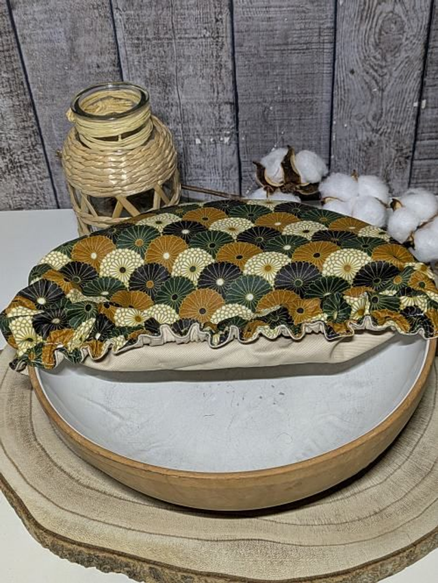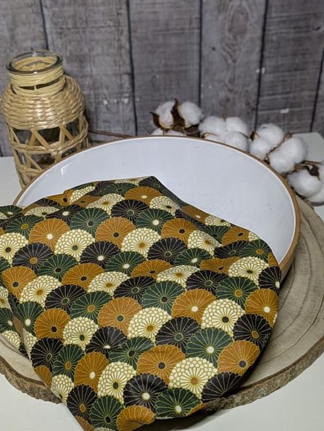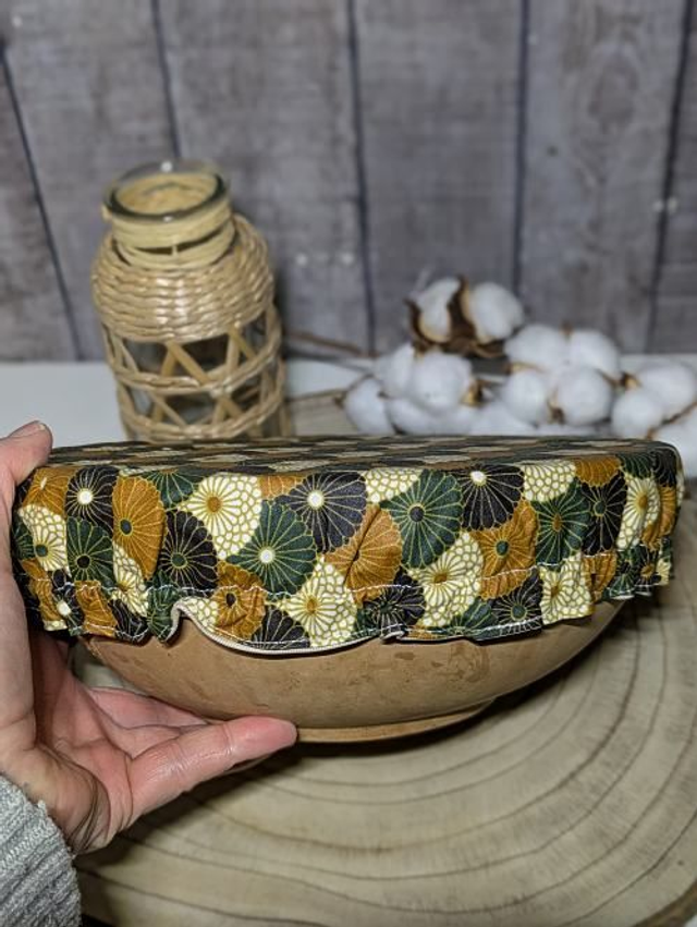 Adoptez un accessoire aussi pratique qu’écoresponsable avec cette charlotte couvre-plat cousue main. Réalisée en coton enduit certifié OEKO-TEX, elle remplace avantageusement les films plastiques ou les papiers aluminium pour couvrir vos plats. Son tissu respirant permet à vos aliments de rester frais plus longtemps, tout en ajoutant une touche artisanale et colorée à votre cuisine.